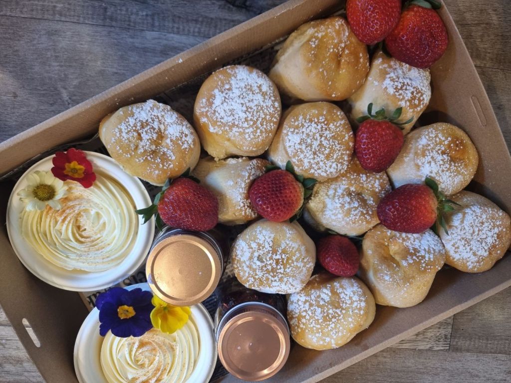 Buttermilk scones with jam, cream and strawberry